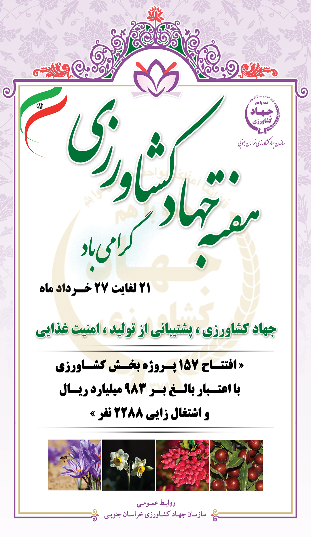 به گزارش روابط عمومی سازمان جهاد کشاورزی خراسان جنوبی، رییس سازمان امروز پنجشنبه (20خرداد) در نشست خبری به مناسبت آغاز هفته جهادکشاورزی گفت: طی هفته جهادکشاورزی 157 پروژه با اعتبار 983 میلیارد ریال در خراسانجنوبی افتتاح میشود که از این اعتبار 289 میلیارد ریال تسهیلات و 299 میلیارد ریال آورده متقاضی است.