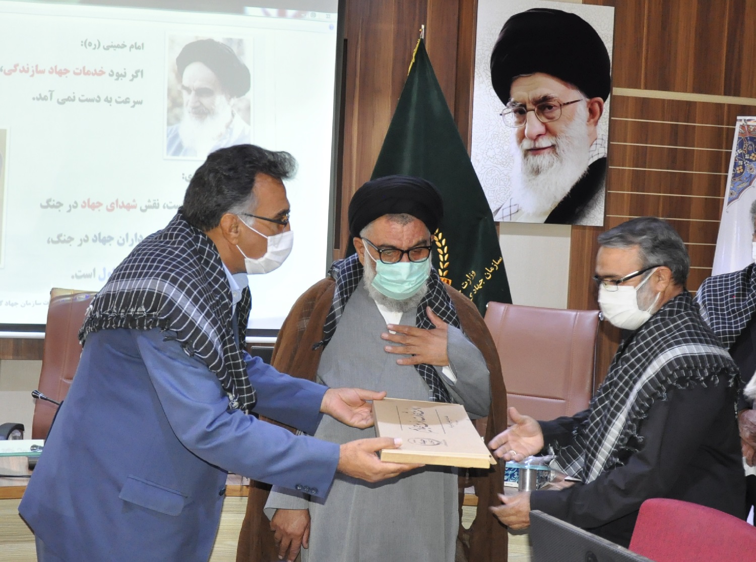 به گزارش روابط عمومی سازمان جهاد کشاورزی خراسان جنوبی، صبح امروز سه شنبه (6 مهر) و در آخرین روز از هفته دفاع مقدس، و همزمان با جلسه ویدئوکنفرانسی نشست ایثارگران سراسر کشور با مقام عالی وزارت، چند نفر از فرماندهان استان در دوران دفاع مقدس با حضور رییس سازمان، نماینده ولی فقیه در سازمان، معاونین و جمعی از مدیران و ایثارگران سازمان، مورد تقدیر و تجلیل قرار گرفتند.