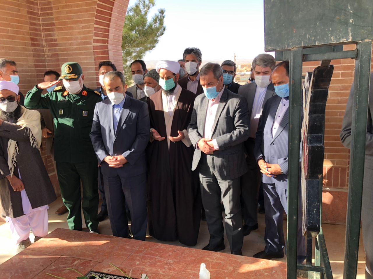 دکترجعفری و استاندار خراسان جنوبی در اولین دقایق حضور خود در گلزار شهدای شهرستان درمیان حاضر و با قرائت فاتحه و تجدید میثاق با آرمان های امام(ره) و شهدا، برنامه کاری سفر یک روزه خود به شهرستان درمیان را آغاز کردند.